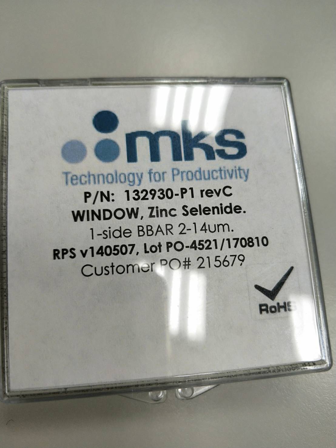 P/N :132930-P1 WINDOW,Zinc Selenide